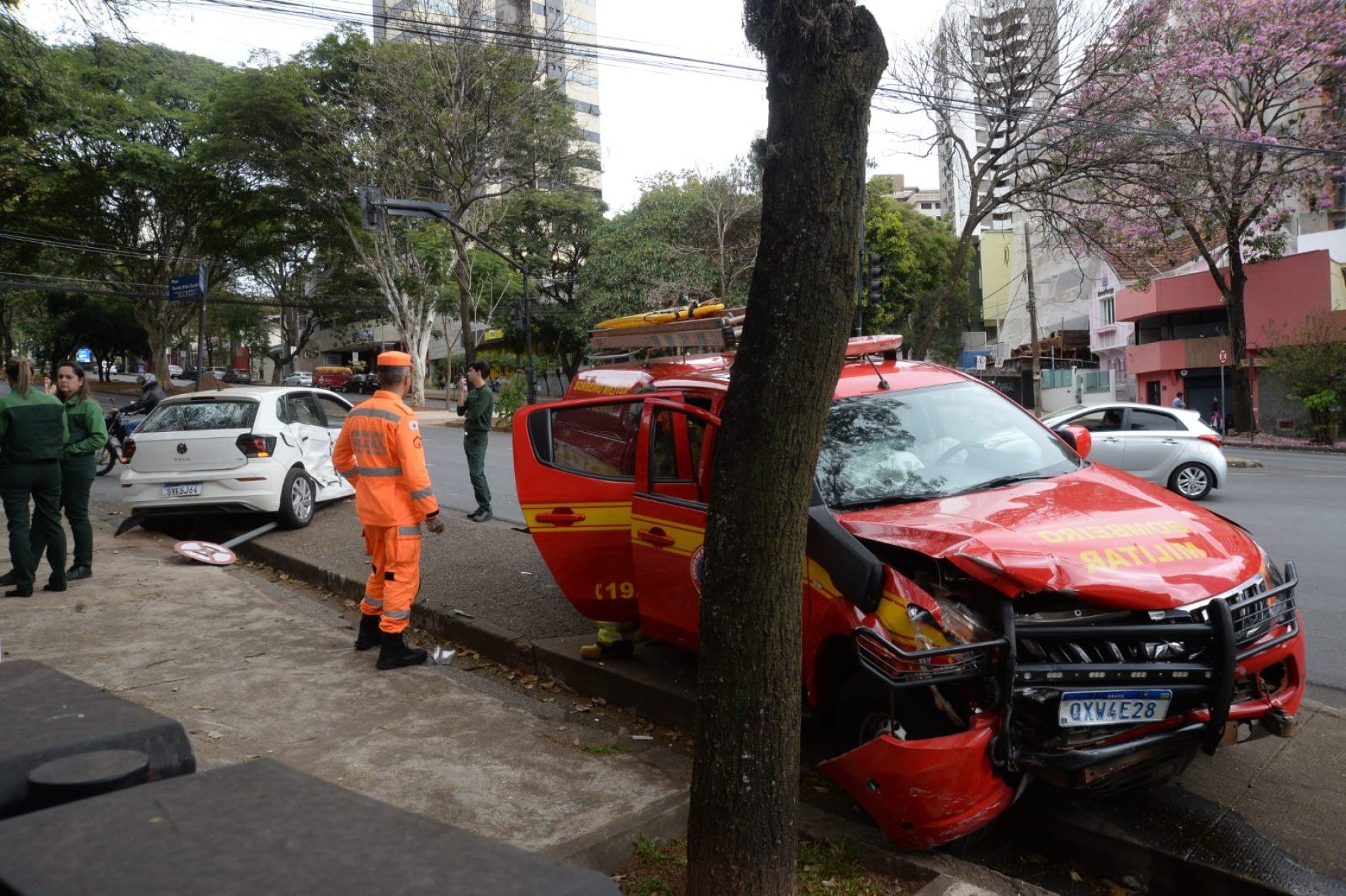 Uma viatura do Corpo de Bombeiros Militar de Minas Gerais (CBMMG) colidiu com um carro Volkswagen Polo e, em seguida, com uma árvore a caminho do atendimento de uma ocorrência. O acidente aconteceu na Avenida Afonso Pena com Rua Santa Rita Durão, Bairro Funcionárias, Região Centro-Sul de BH, nesta terça-feira (2/9).
