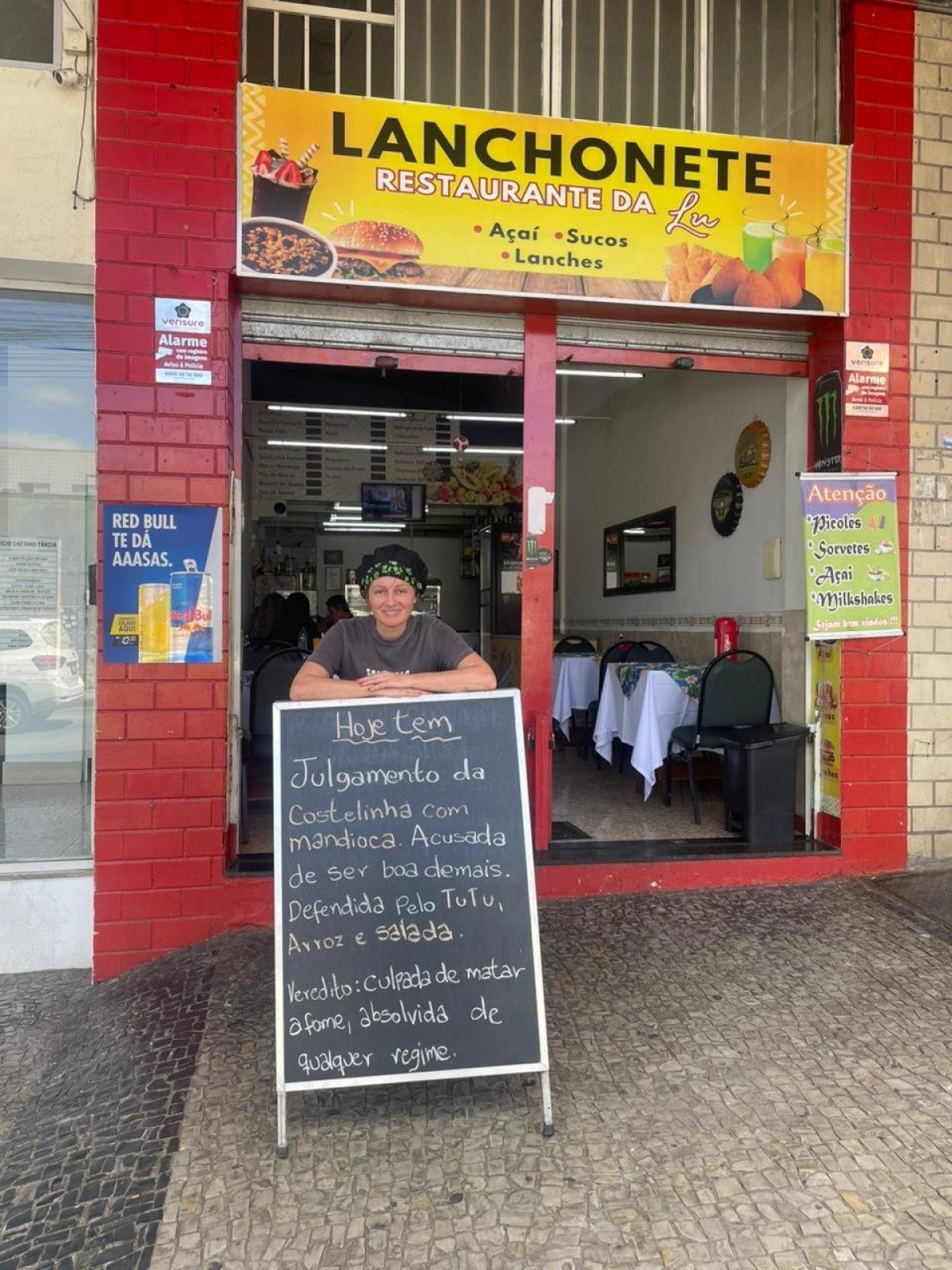 Na última semana, uma placa chamou atenção: “Lei Magnitsky da vó: qualquer pessoa que ignore essa costelinha com mandioca será processada… pelo próprio coração, sob pena de arrependimento e crime de irresponsabilidade contra o tutu, o arroz e a salada”.