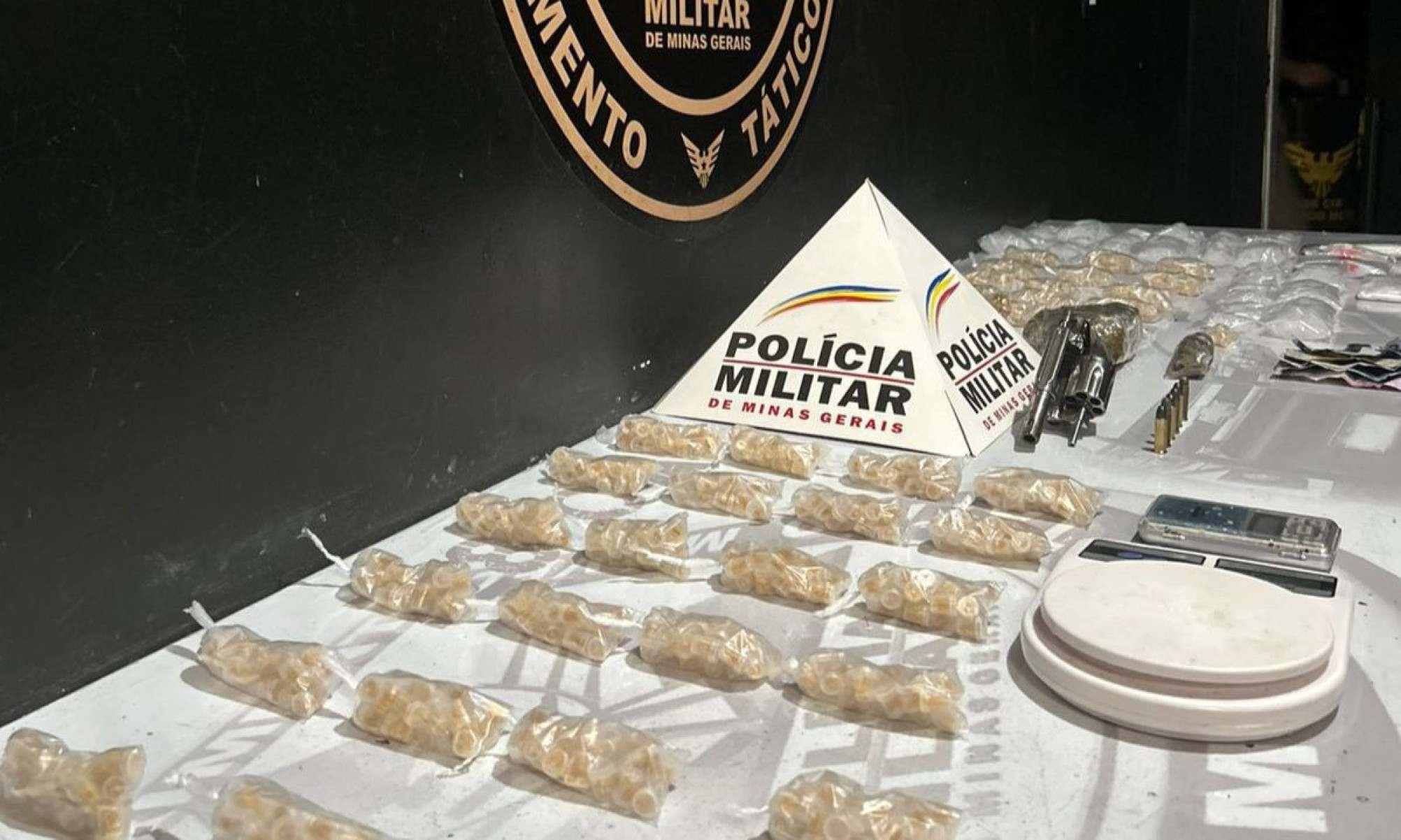 Questionada sobre o material, a mulher admitiu que era dela, e não da jovem de 22 anos que também fazia a separação. Disse ainda que receberia R$ 1.000 para realizar a dolagem. As duas foram presas por tráfico de drogas e porte ilegal de arma de fogo, e o caso, junto do material apreendido, foi encaminhado à Polícia Civil.