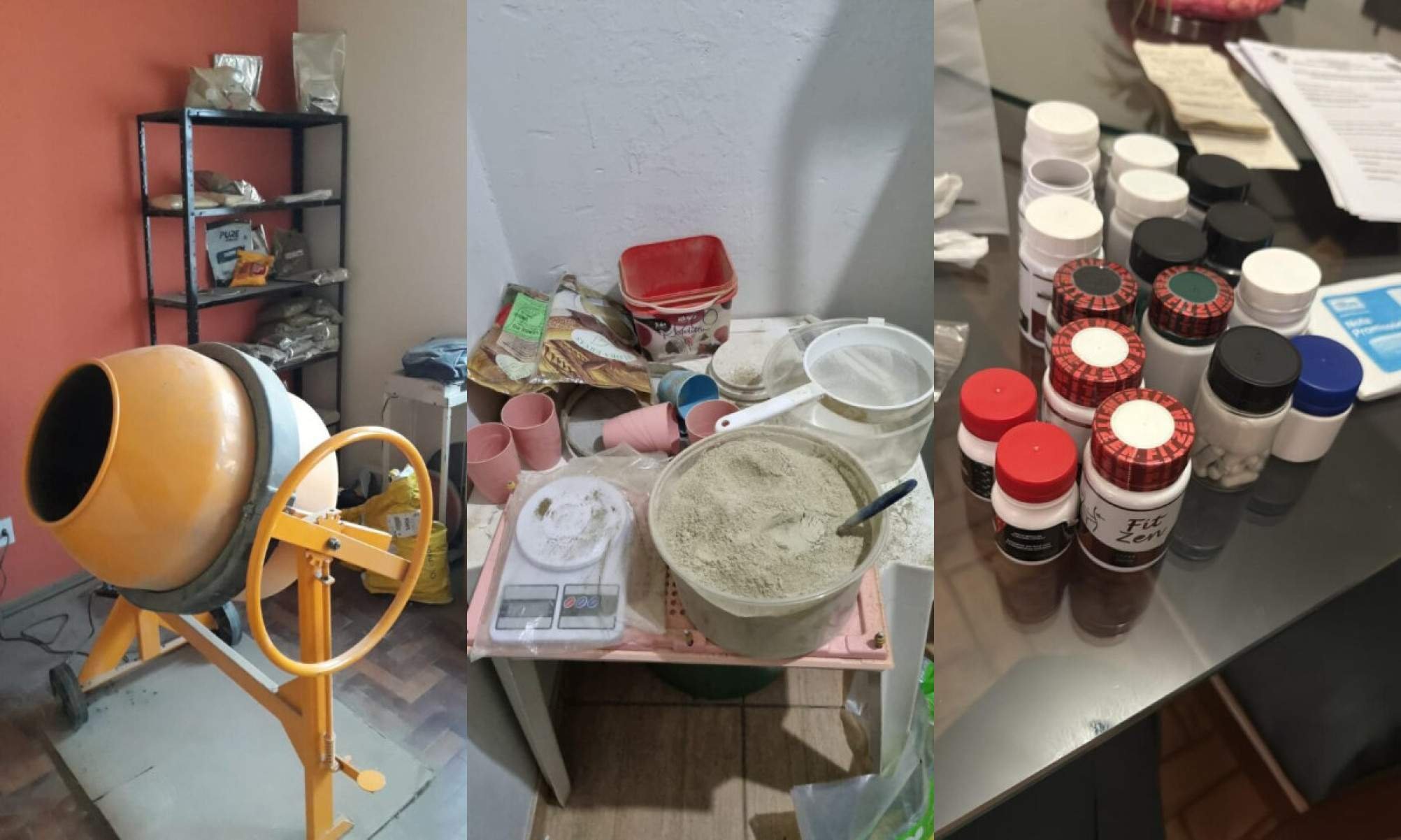 A investigação revelou a atuação de uma associação criminosa estruturada para produção, adulteração e venda de medicamentos destinados a fins terapêuticos e medicinais, com distribuição em diferentes estados do país. Entre os equipamentos usados para a fabricação dos medicamentos estava uma betoneira, geralmente, usada na construção civil para misturar cimento.