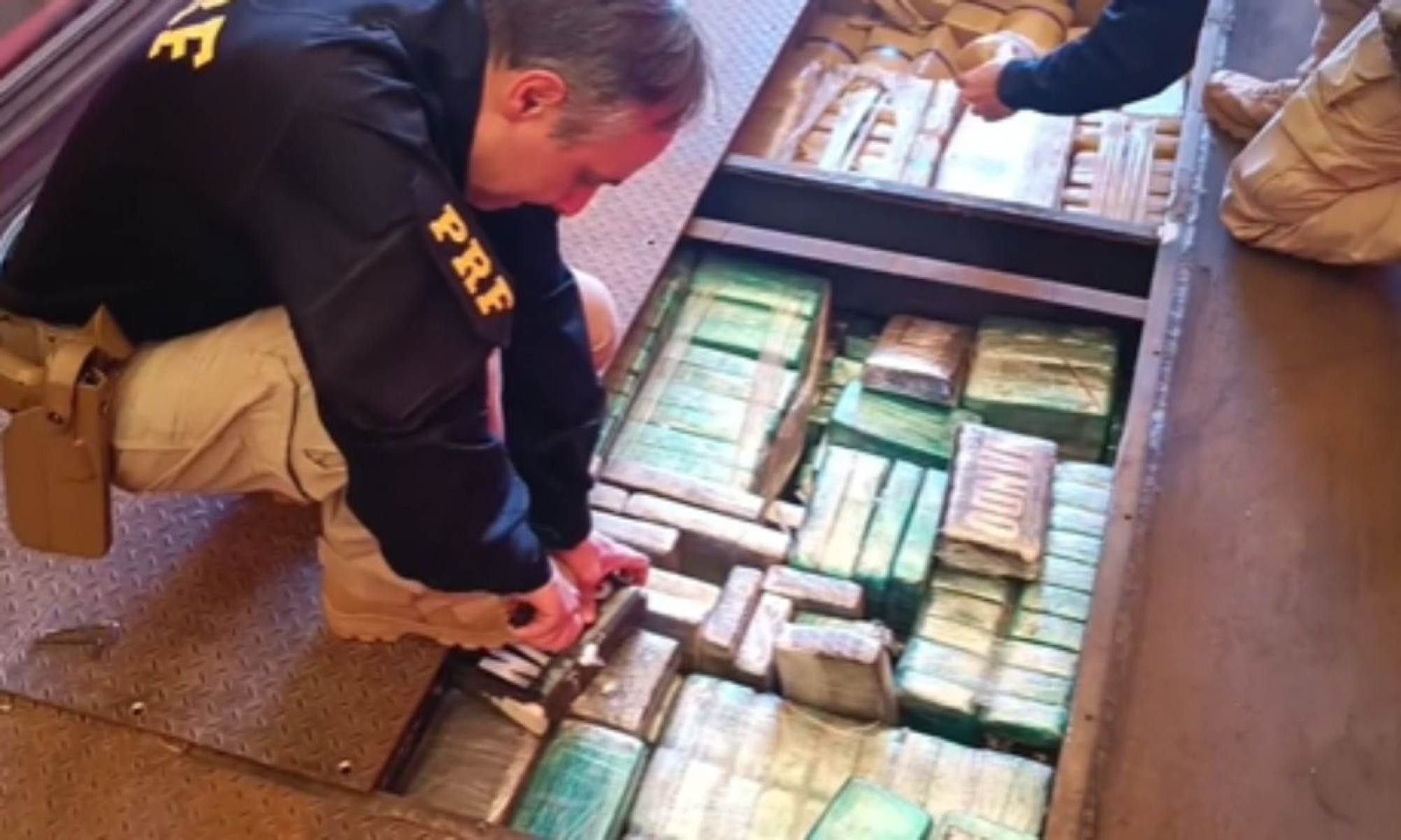 Ao revistarem o veículo, os agentes encontraram o compartimento oculto onde estavam os entorpecentes. Conforme os registros, no fundo falso havia tabletes de cocaína, pasta-base de cocaína e maconha. A pesagem totalizou 53,6 kg de cocaína, 156,3 kg de pasta-base e 82,3 kg de maconha.