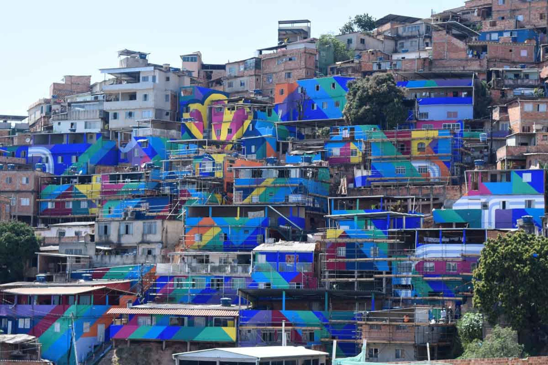 Antes do trabalho dos artistas, as cores que predominavam nas casas da comunidade eram de tijolos e concreto