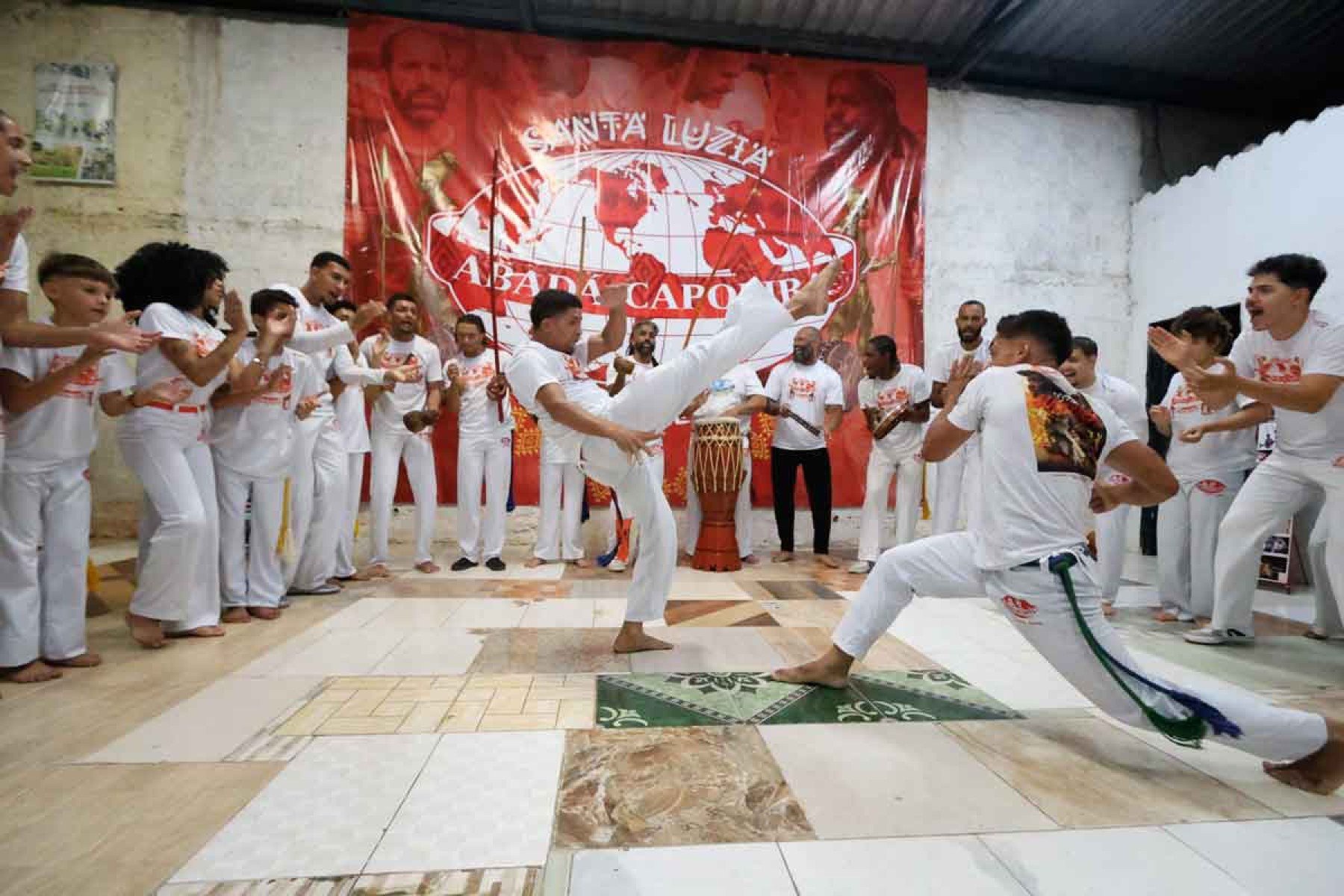 No Bairro São Cosme, em Santa Luzia, onde antes havia apenas um terreno abandonado tomado por lixo e entulho, hoje ecoam os sons dos berimbaus, atabaques e pandeiros. É o chamado da capoeira que atrai crianças, jovens e adultos, curiosos ao passarem pela rua, despertados pela música que os convida a entrar. O espaço, que simbolizava o descaso e a falta de perspectivas, foi transformado pela associação comunitária e pelo mestre Lyssinho em um centro de cultura, educação e resistência – um lugar onde o ritmo dos instrumentos abre caminhos para novas histórias.