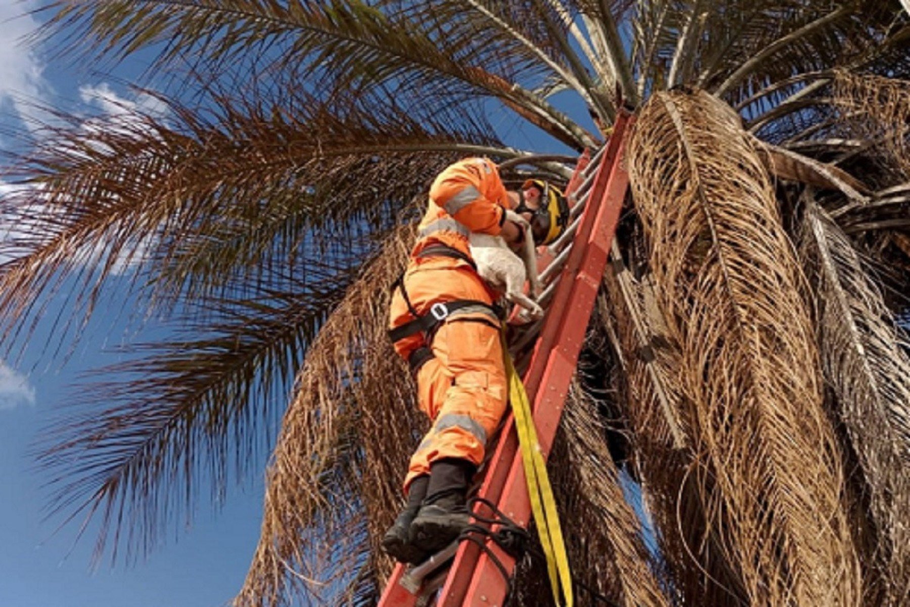Para acessar o animal, os militares utilizaram uma escada prolongável. Um bombeiro, equipado com materiais de proteção e técnicas de salvamento em altura, subiu até o local e conseguiu retirar o felino em segurança.