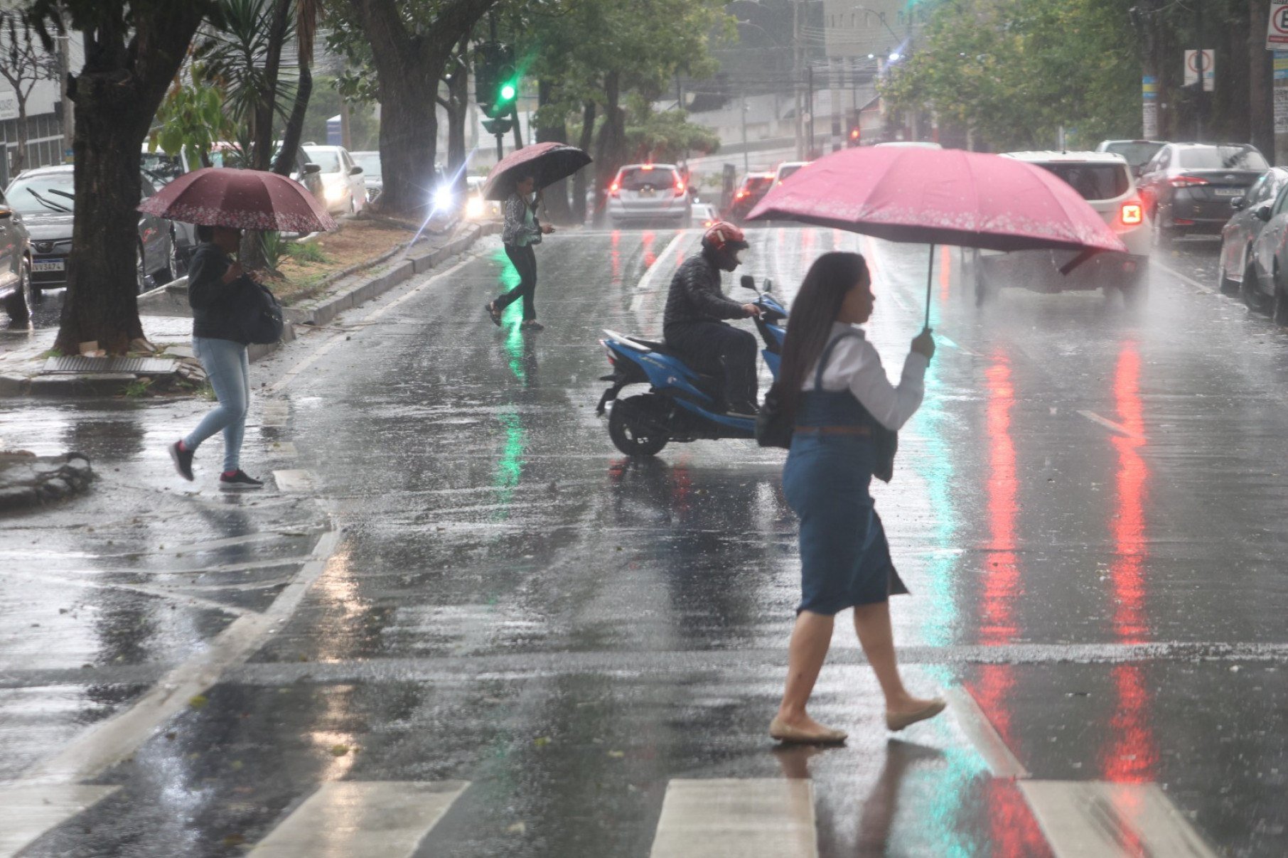 A Defesa Civil orienta moradores a manter atenção durante as pancadas de chuva previstas para a tarde, evitando áreas de risco e tomando cuidado no trânsito.