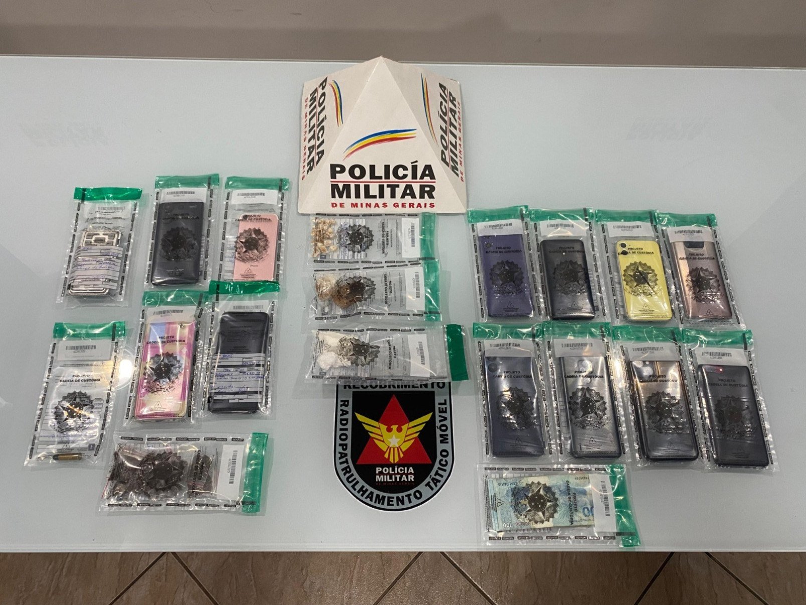 Durante a ação, foram apreendidos 22 pedras de crack, 10 buchas de maconha, duas porções de crack de 25 gramas cada, uma porção de cocaína em formato de escama de peixe, 12 celulares, R$ 542 em dinheiro, uma balança de precisão e uma munição calibre .38 intacta.
