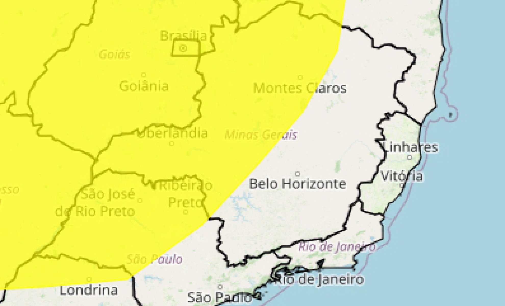 Lista de municípios sob alerta em Minas Gerais