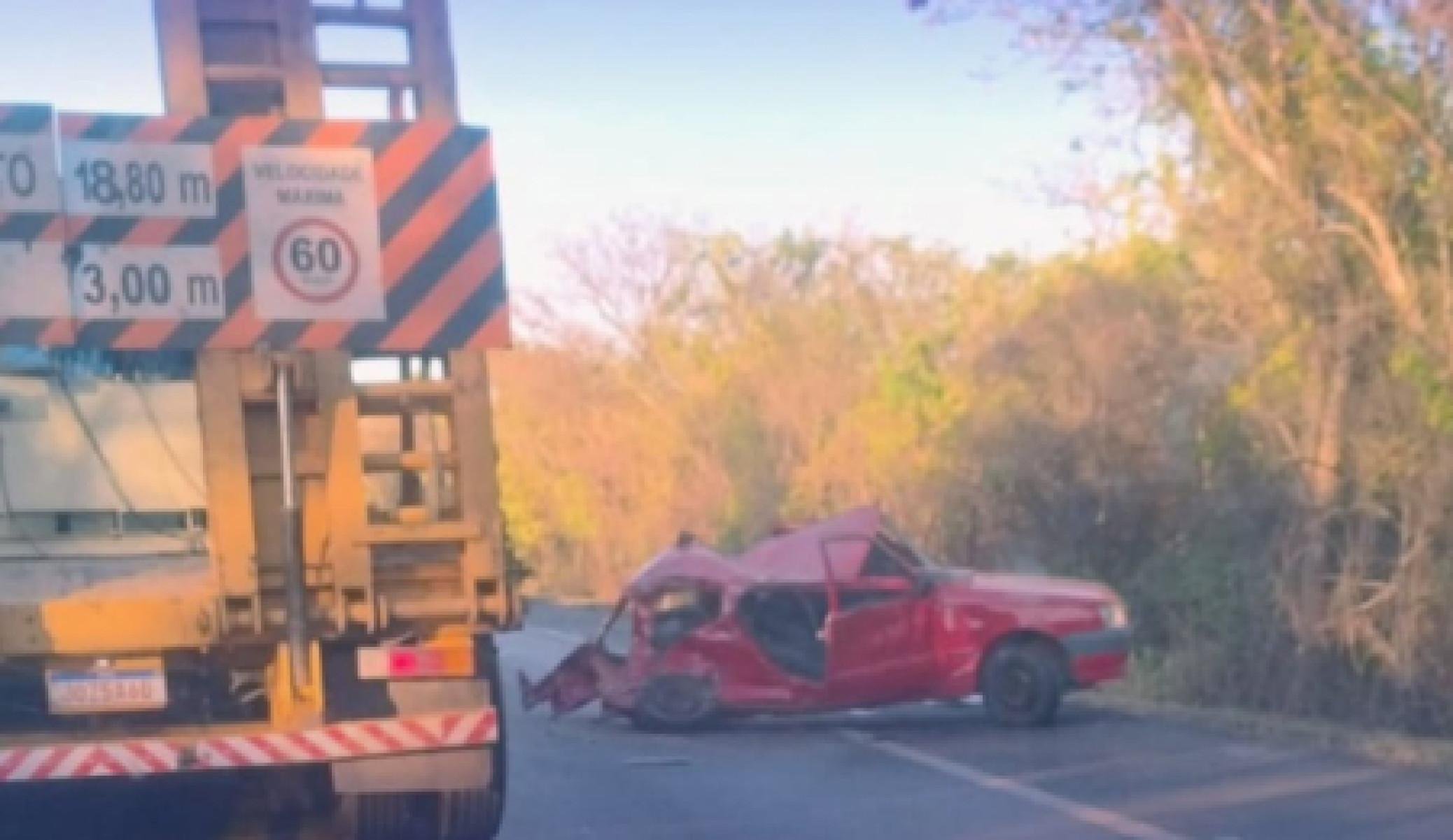 Uma batida entre um Fiat uno e uma carreta provocou a morte de uma passageira e ferimentos graves no motorista do carro, interditando a BR-135 por 4 horas, na manhã deste domingo (28/09).