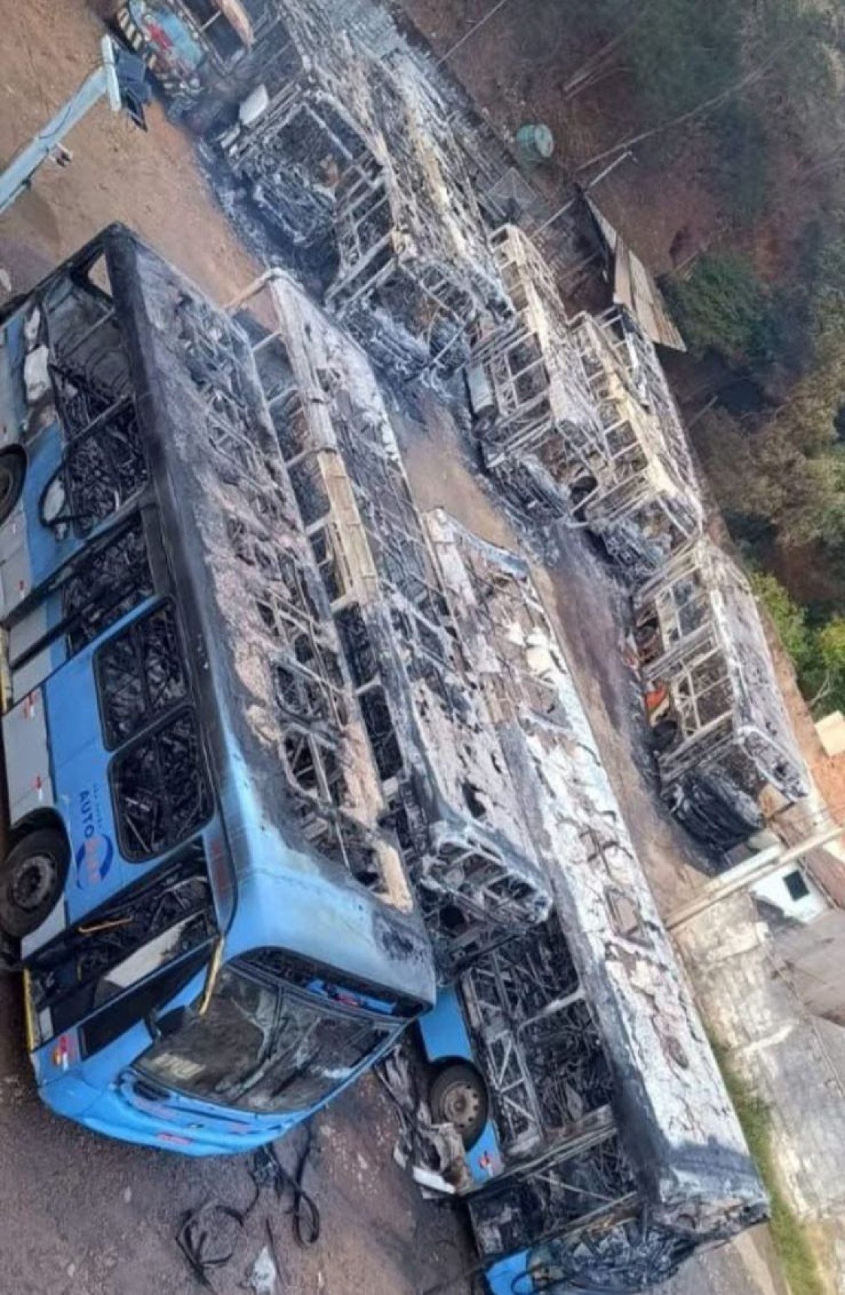 Um incêndio atingiu a garagem da Viação São Jorge, em Ponte Nova (MG) , na Zona da Mata, na madrugada desta segunda-feira (29/9). De acordo com o Corpo de Bombeiros, o fogo atingiu dez ônibus e destruiu parte da frota. Não há registro de feridos.