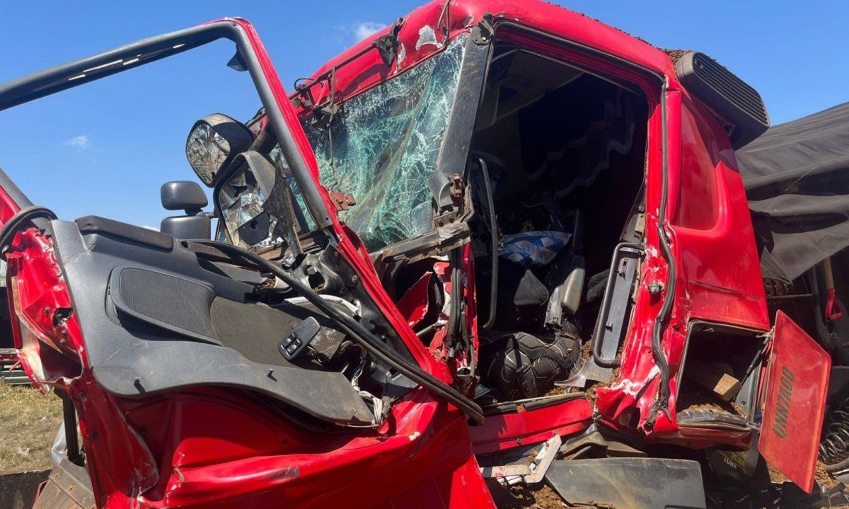 A batida destruiu a cabine de um dos veículos, que colidiu na traseira de outro. Imagens feitas no local mostram a frente da carreta completamente retorcida e pedaços do veículo espalhados pela rodovia.