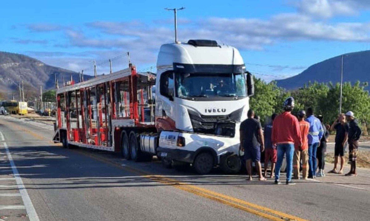 De acordo com o Corpo de Bombeiros, o acidente aconteceu em uma rotatória de cruzamento entre a BR-116 com a BR-367, no sentido Almenara (MG), por volta de 6h40 da manhã. A picape foi encontrada atravessada em frente à cabine da cegonha.