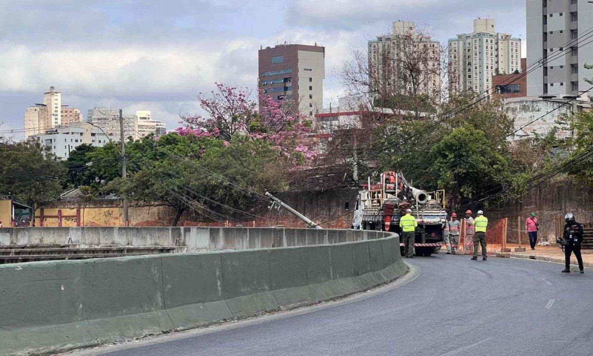 Poste fica atravessado na Av dos Andradas e deixa trânsito lento em BH