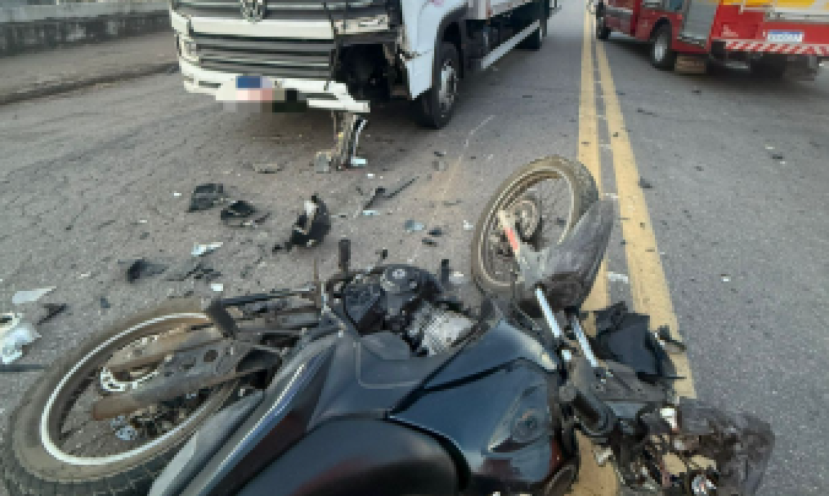 Um motociclista de 20 anos ficou ferido após bater de frente contra um caminhão nessa quinta-feira (2/10), em Varginha (MG), no Sul de Minas.
