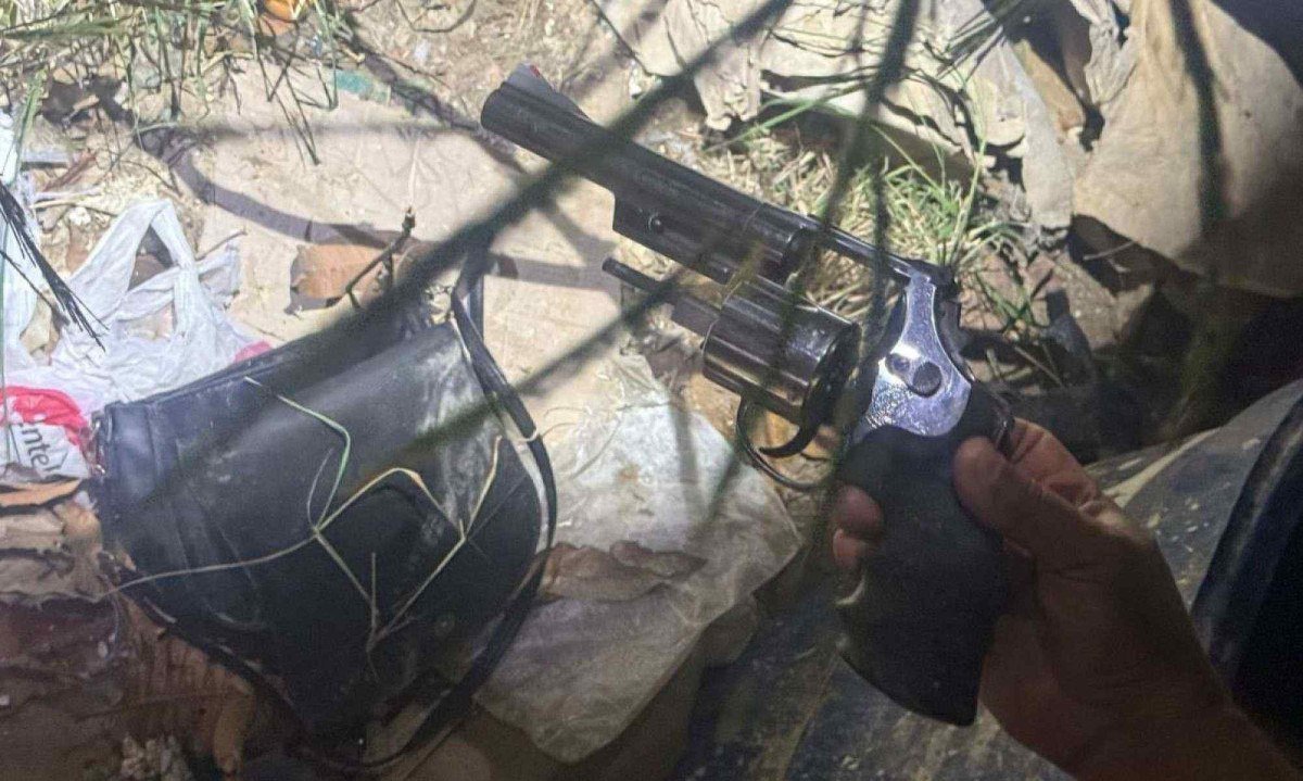 Os militares se aproximaram e os dois fugiram a pé. Foi feita uma varredura no lote onde estavam e os policiais encontraram um revólver de calibre 44 com cinco munições intactas. Assim que recolhida a arma, os militares seguiram em incursão pelas ruas do bairro e viram novamente a dupla, que saiu correndo.