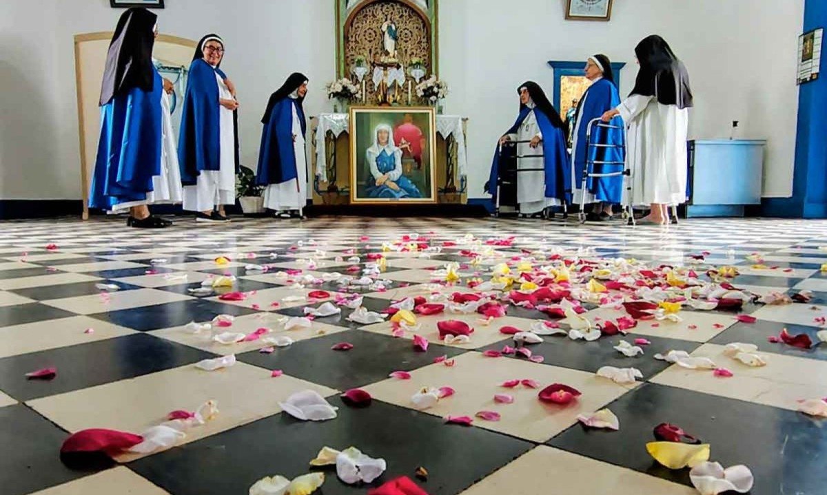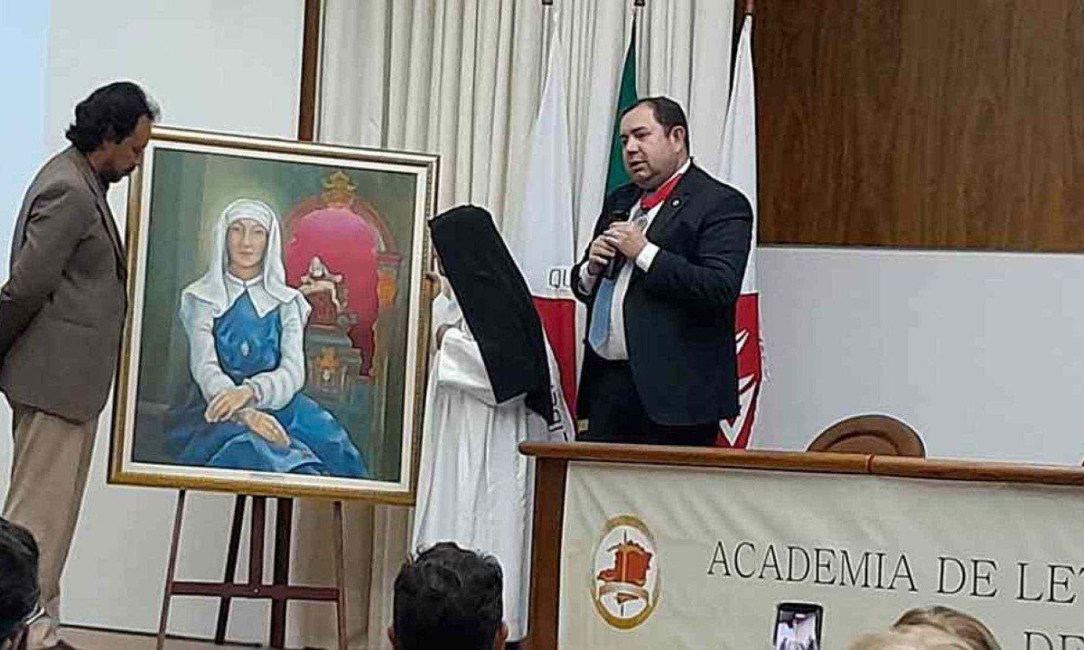 Foi um dia de alegria, com pétalas de rosas colorindo o ambiente, sorrisos de boas-vindas e abraços abertos para receber um presente embalado em pura emoção. As religiosas do Mosteiro de Macaúbas, em Santa Luzia, têm agora no seu acervo um quadro com a representação histórico-artística da Irmã Germana Maria da Purificação (1782-1856), que morou na Serra da Piedade, em Caeté, e, de 1843 até o fim da vida, na tricentenária edificação localizada na zona rural luziense. O óleo sobre tela, de autoria do artista visual Wesley Rocher Monteiro, mostra dois tempos na vida Irmã Germana: o passado representado pelo altar dedicado a Nossa Senhora da Piedade, na ermida no topo da Serra da Piedade, que guarda a imagem da padroeira de Minas atribuída a Aleijadinho; e em Macaúbas, fundado em 1714, já com o hábito de recolhida e o medalhão de Nossa Senhora da Conceição.