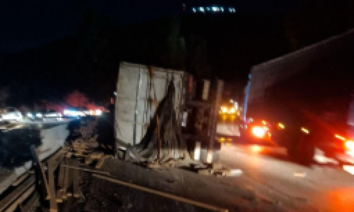 Como relatado mais cedo em reportagem, uma carreta derramou a carga que transportava e interditou completamente a BR-381, em Brumadinho, na Grande BH, na noite desse domingo (5).