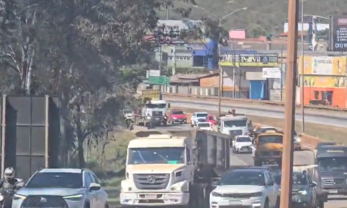 Grande BH: caminhão sai da pista e provoca congestionamento na BR-040