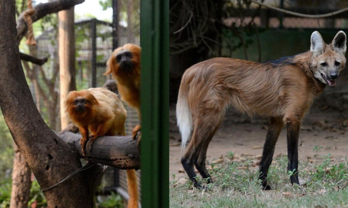 Há ainda outros animais ameaçados no zoo de BH, como o lobo guará, espécie de canídeo endêmico da América do Sul. Um catálogo da União Internacional para a Conservação da Natureza (IUCN) contabilizou 24 mil indivíduos sobreviventes em todo o Brasil.