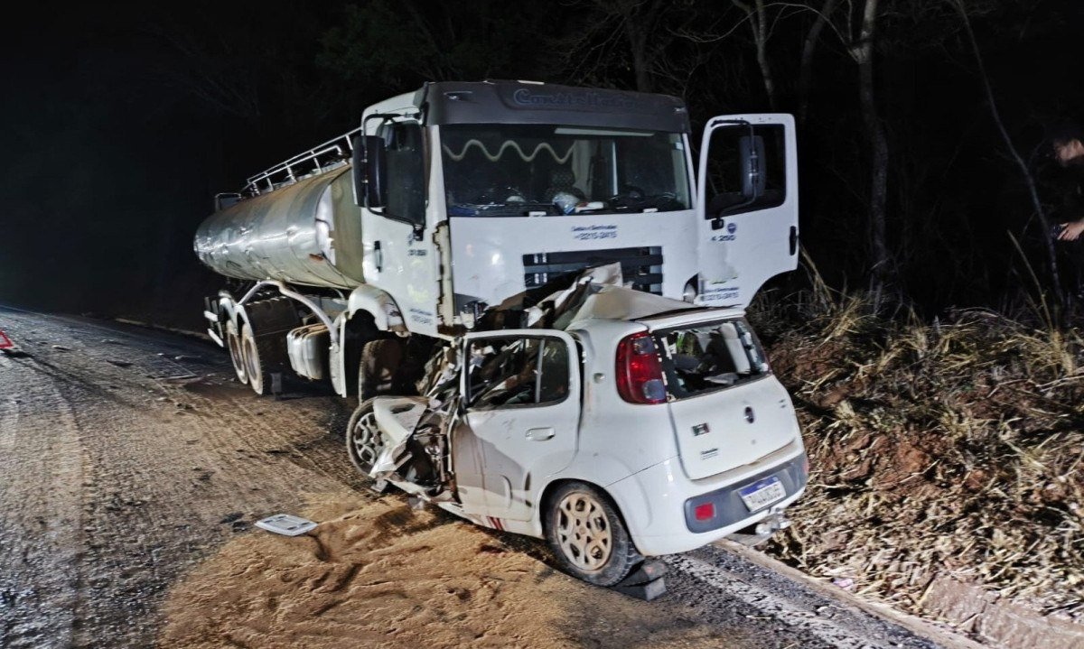 Vítimas, três da mesma família, viajavam em um Fiat Uno, que bateu de frente com um caminhão de leite na MGC 135, em Mirabela