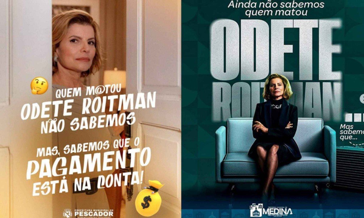 No perfil da Prefeitura de Medina, no Vale do Jequitinhonha, a postagem é sobre diferentes atrações que acontecem na cidade, como o projeto Rua da Corrida, conjunto de atividades de lazer, esporte e convivência em espaços públicos. "A gente ainda não descobriu quem matou Odete Roitman, mas uma coisa é certa: a prefeitura de Medina tá voando e você precisa acompanhar de perto", diz a publicação.