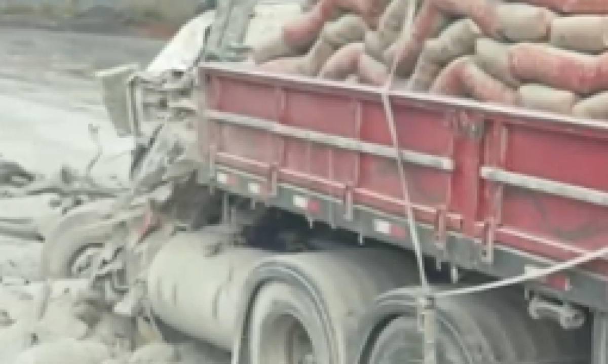 Vídeo: acidente com carreta espalha carga de cimento na BR-381