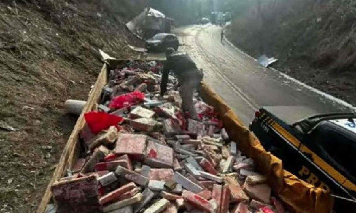 No acidente, agentes da Polícia Rodoviária Federal (PRF) passaram a madrugada e a manhã recolhendo tabletes do entorpecente que ficaram esparramados pelo asfalto, em meio às demais cargas.