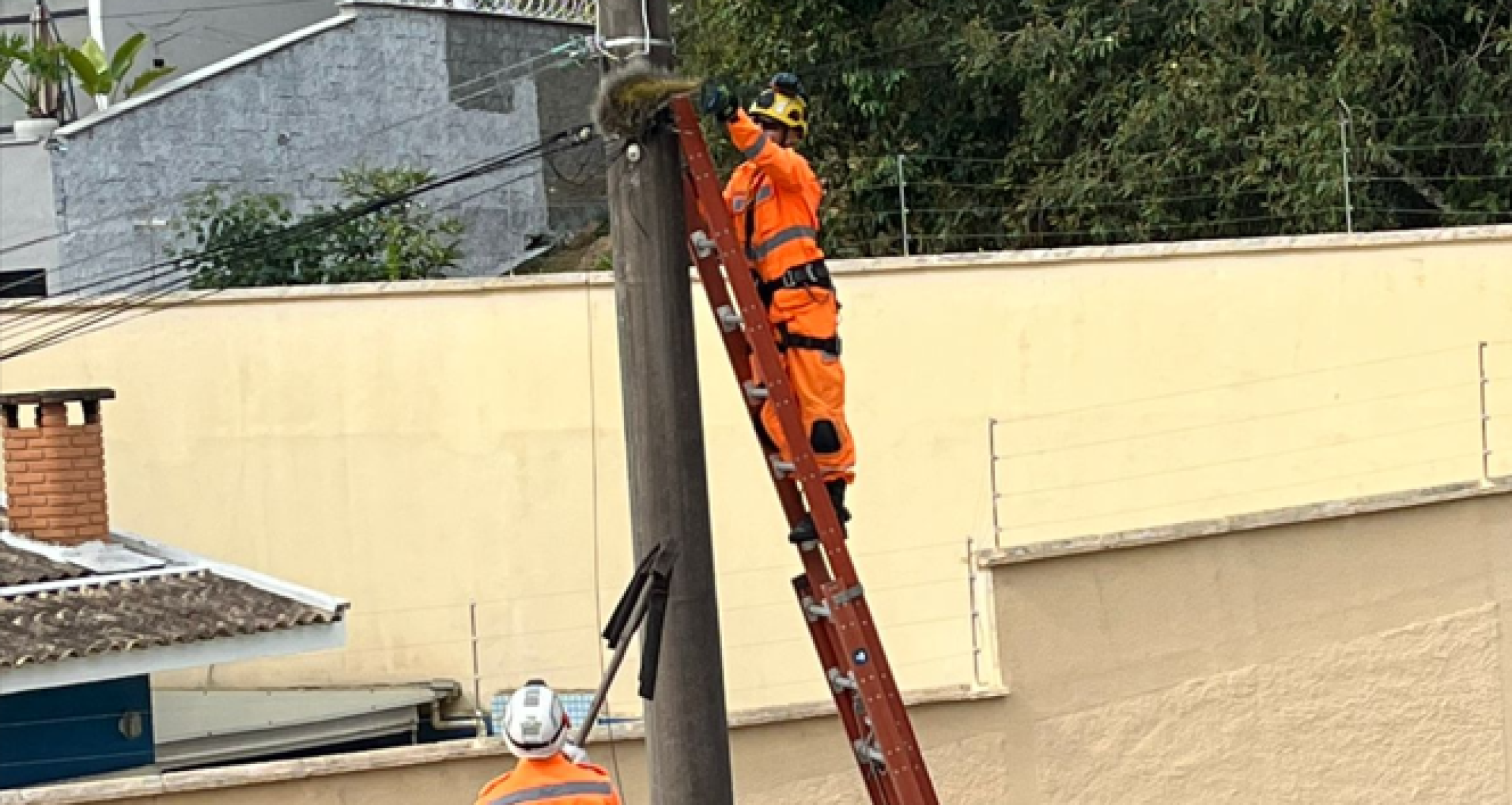 De acordo com os militares, o ouriço estava no local desde a parte da manhã e não conseguia descer sozinho. O resgate foi feito com técnicas específicas e uso de equipamentos de proteção para evitar riscos ao animal e à equipe.
