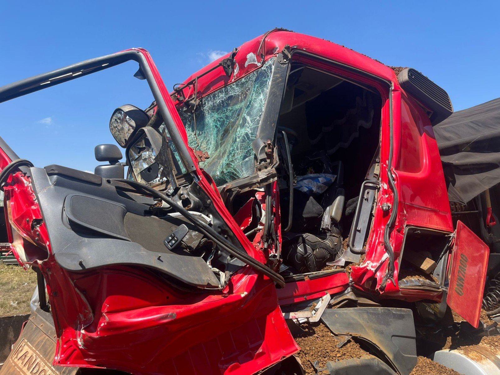 A batida destruiu a cabine de um dos veículos, que colidiu na traseira de outro. Imagens feitas no local mostram a frente da carreta completamente retorcida e pedaços do veículo espalhados pela rodovia.