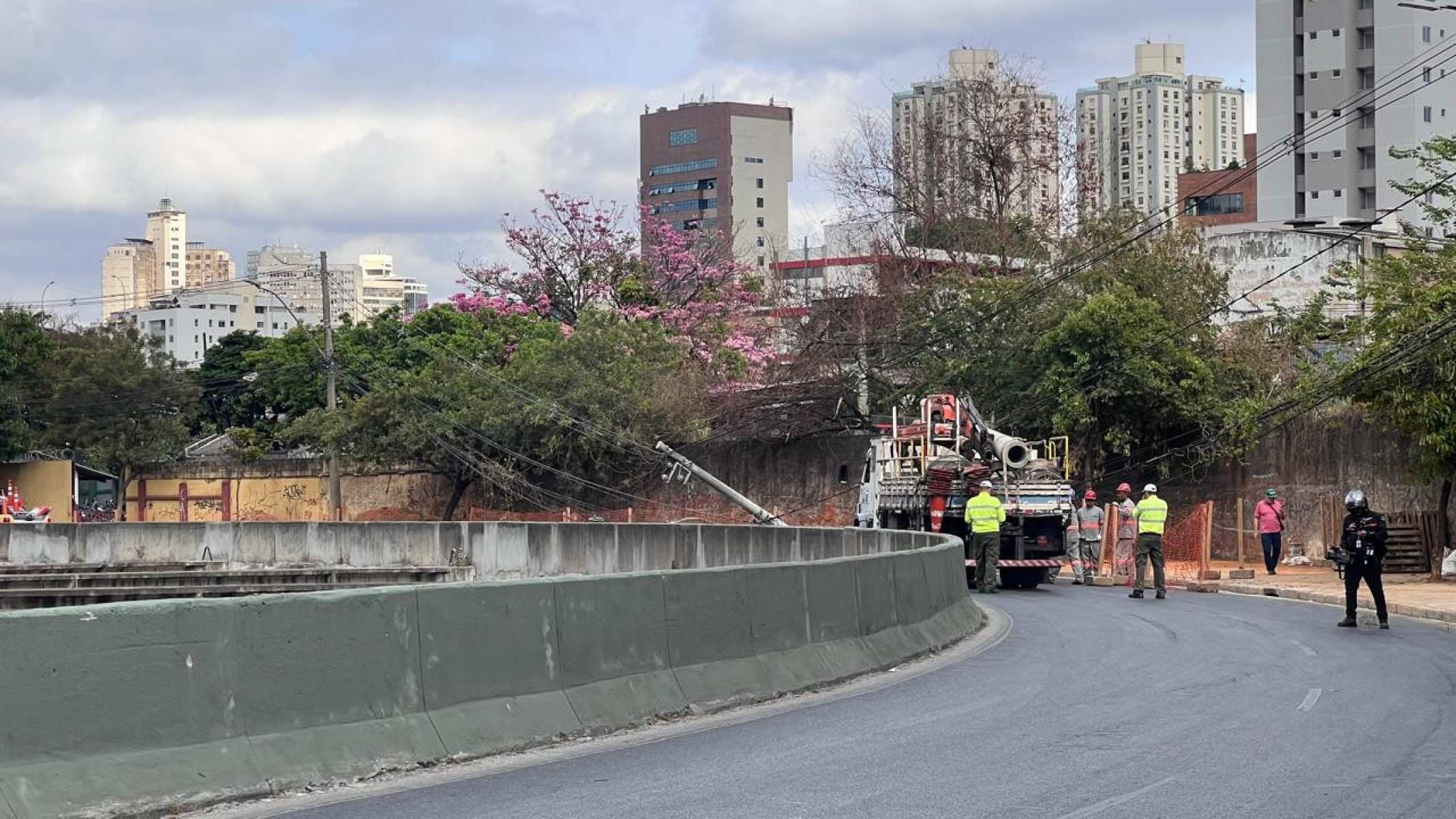 Um poste caiu na madrugada desta sexta-feira (3/10) na Avenida dos Andradas, na altura do bairro Santa Efigênia, na Região Leste de Belo Horizonte (MG), entre a Avenida do Contorno e a Avenida Francisco Sales, e deixou o trânsito parado no sentido centro. A queda aconteceu após um carro bater na estrutura, que permanece apoiada apenas pelos cabos, ninguém ficou ferido.