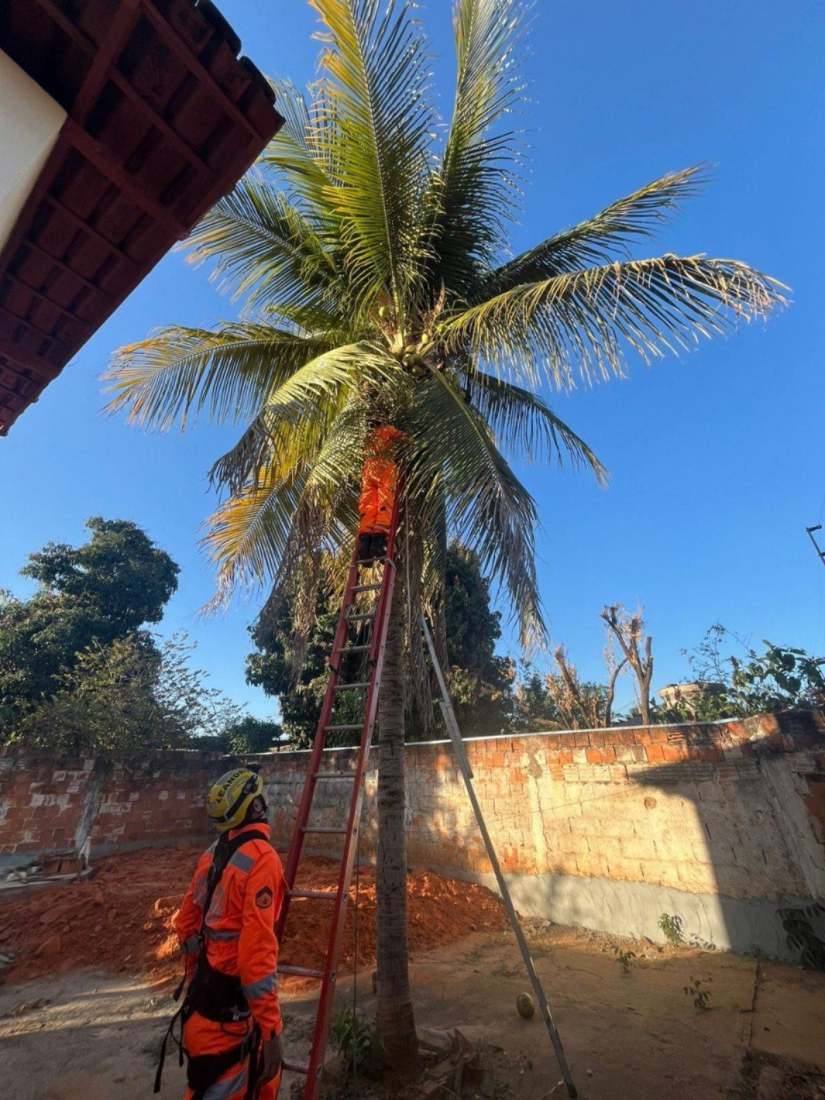 O Corpo de Bombeiros foi acionado para resgatar uma gata que estava presa em cima de um coqueiro há cinco dias. O salvamento aconteceu no Bairro Brasilina, em Januária, na Região Norte de Minas Gerais, nessa sexta-feira (10/10).
