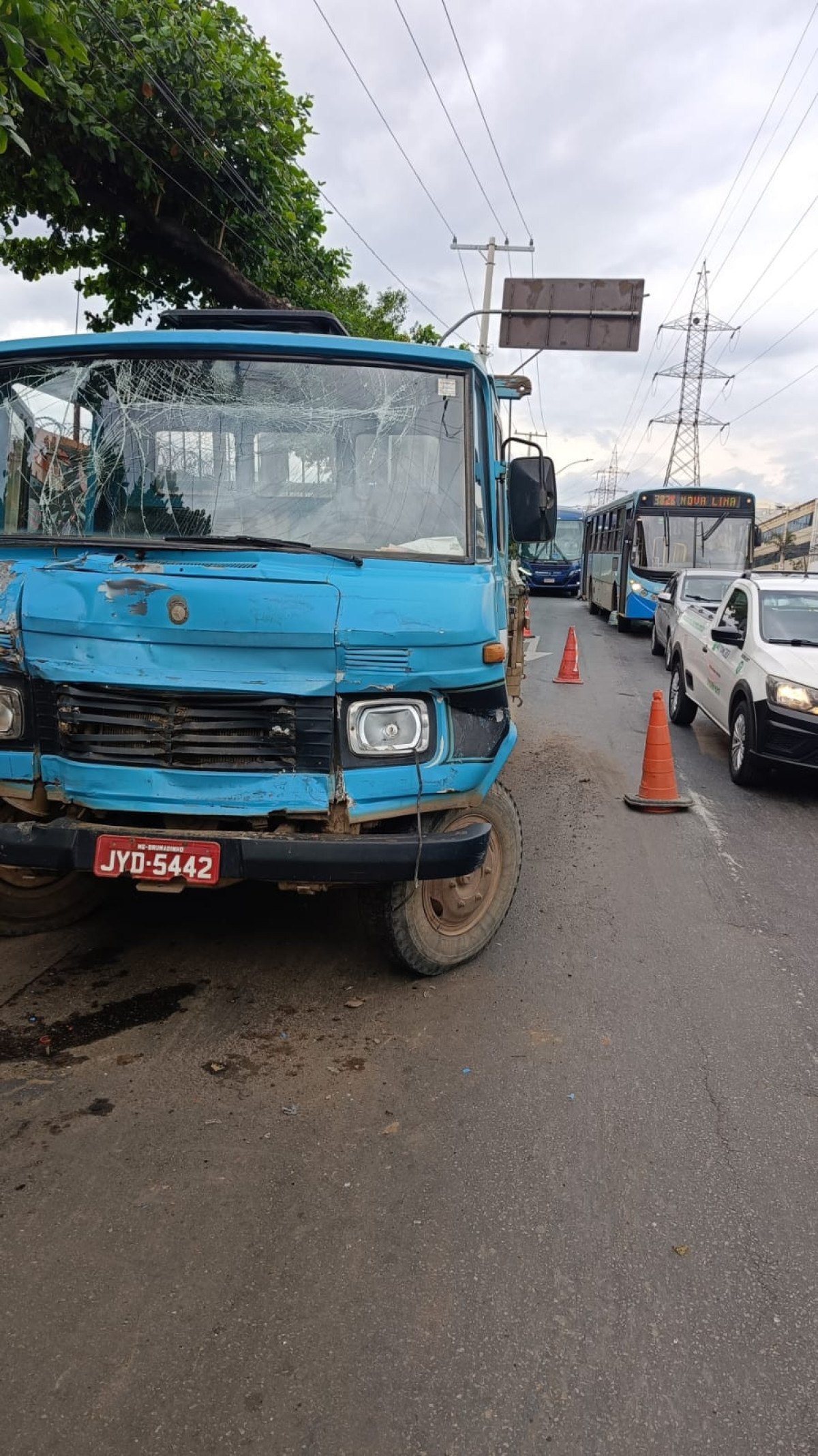 Um caminhão perdeu o freio e colidiu na traseira de um ônibus na manhã desta segunda-feira (13/10), em Contagem (MG), na Grande BH.