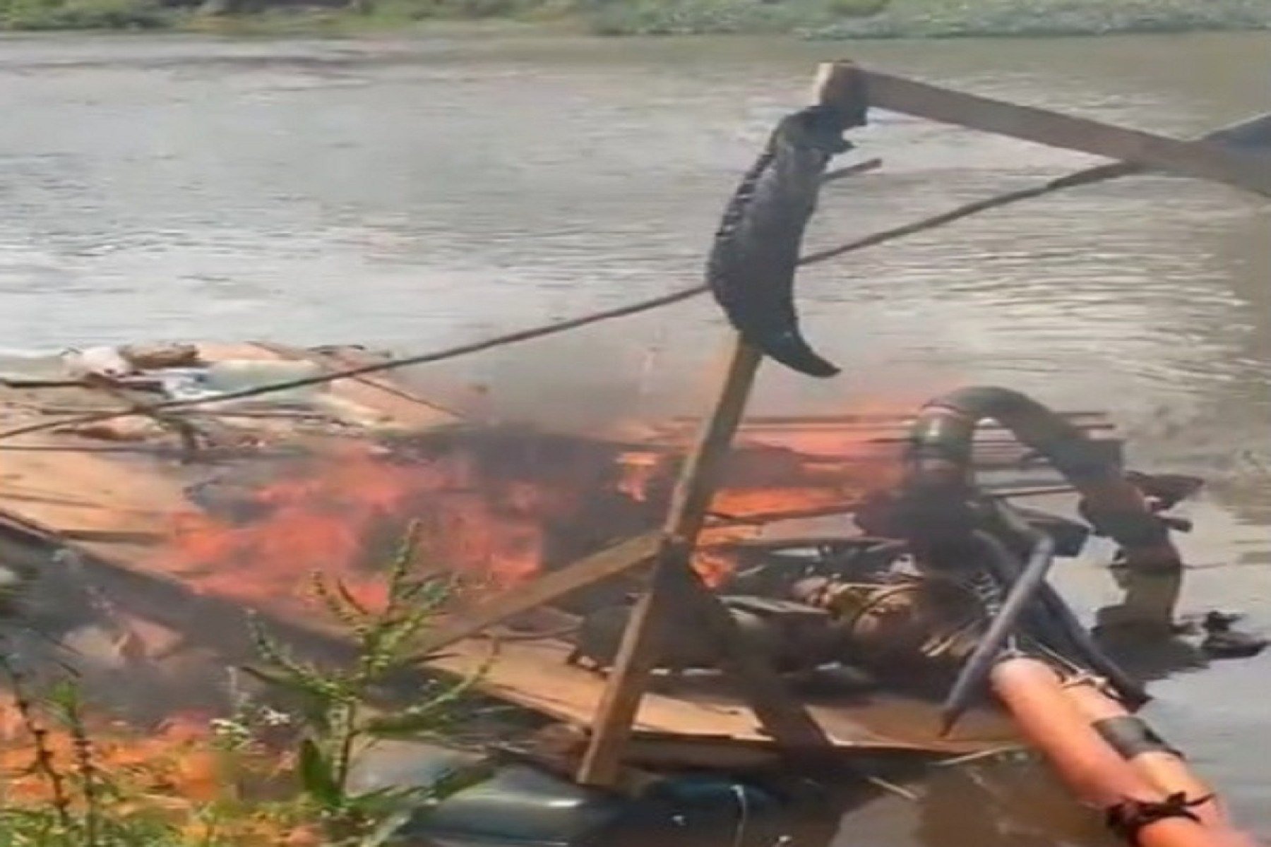 Dragas e Balsas foram destruídas pelos policiais militares que atearam fogo em todas - (crédito: CBMMG)