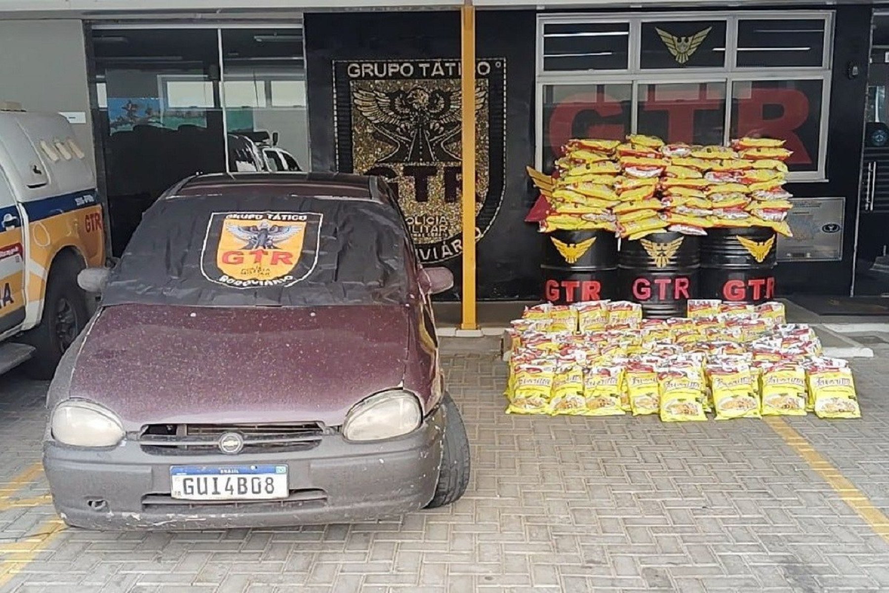 Ao revistarem o veículo, os policiais encontraram 200 quilos de batata palha, já embalados para a venda, em pacotes. Como não havia nota dos produtos, os militares interrogaram os suspeitos e começaram a desvendar outros roubos de carga cometidos pelo grupo. Na casa de um deles, foi encontrada uma grande quantidade de roupas, equipamentos eletrônicos também sem nota, além de uma tornozeleira eletrônica.