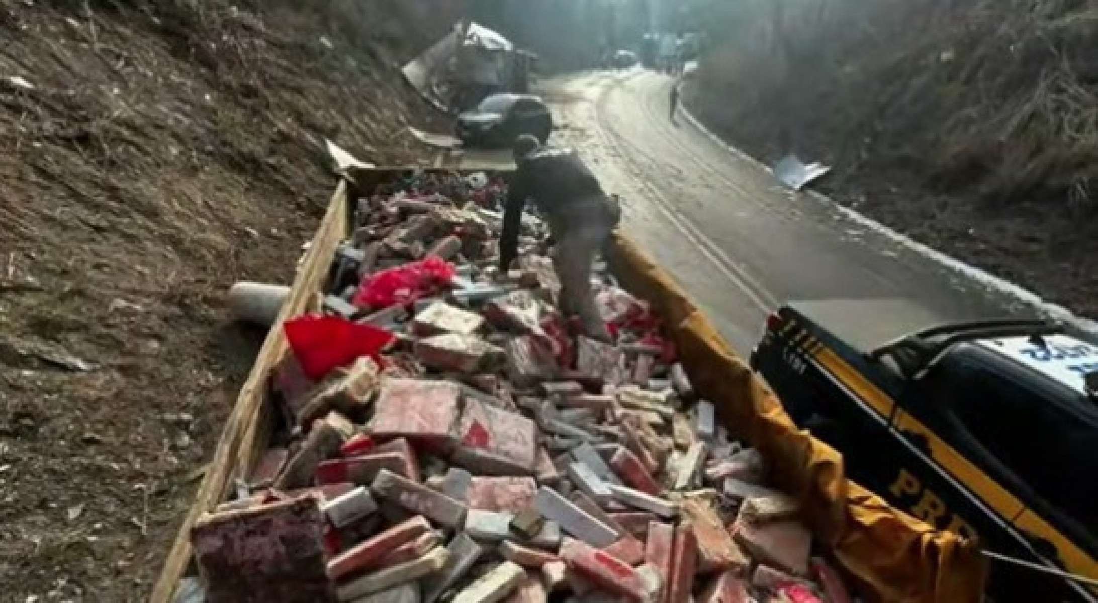 No acidente, agentes da Polícia Rodoviária Federal (PRF) passaram a madrugada e a manhã recolhendo tabletes do entorpecente que ficaram esparramados pelo asfalto, em meio às demais cargas.