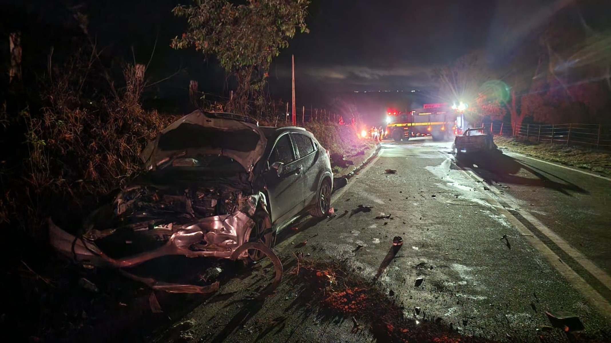 Uma colisão entre dois carros seguida de incêndio deixou três pessoas feridas na madrugada deste domingo (19), por volta da 1h, na Rodovia do Calçado (AMG-0370), em uma área rural entre os municípios de Nova Serrana e Perdigão, na região Centro-Oeste de Minas.