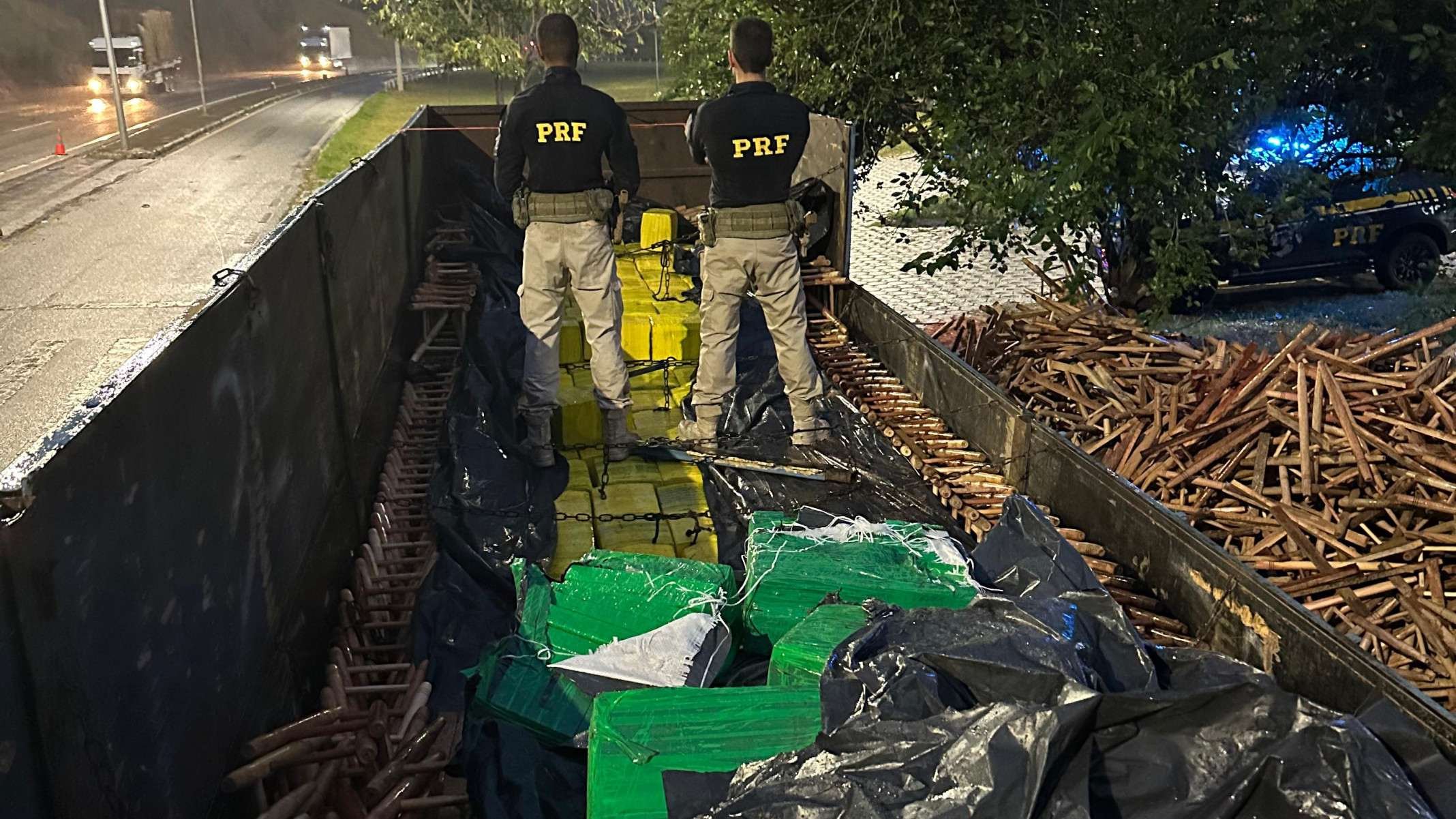 Os agentes da PRF localizaram a droga após a fiscalização de uma carreta, que foi abordada por apresentar problemas no sistema de iluminação. A maconha estava escondida em um caminhão que transportava banquetas de madeira.