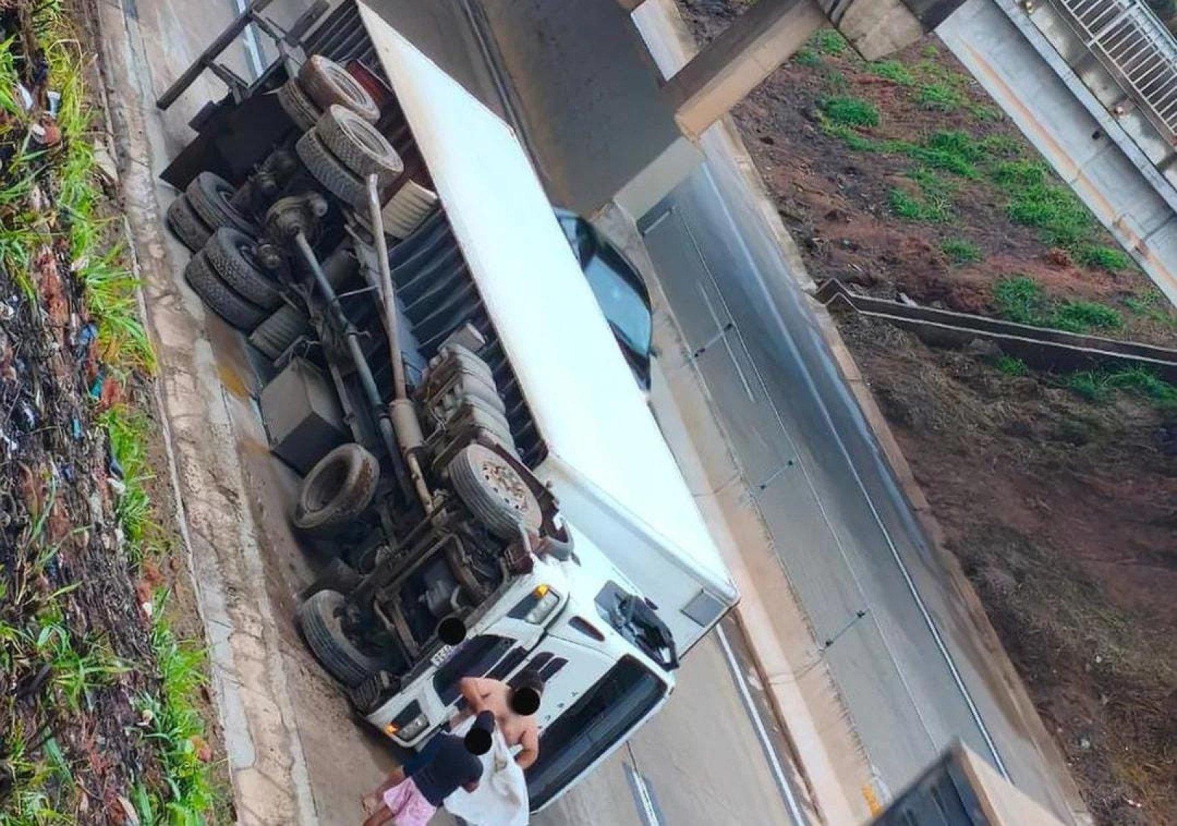 Um caminhão tombou na BR-381, em Caeté (MG), na Região Metropolitana de Belo Horizonte, e interditou uma faixa no sentido Leste na manhã desta segunda-feira (3/11).
