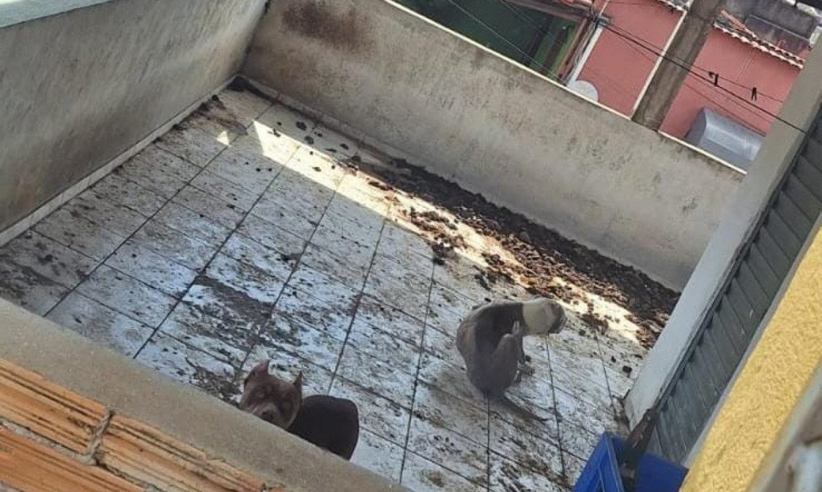 Na parte superior do imóvel estavam os animais. O espaço, conforme a PM, estava cheio de fezes e os cães, magros, com unhas grandes. A Polícia Militar também informou que um deles é macho e tinha uma ferida na pata direita e lesões entre os dedos das patas traseiras.