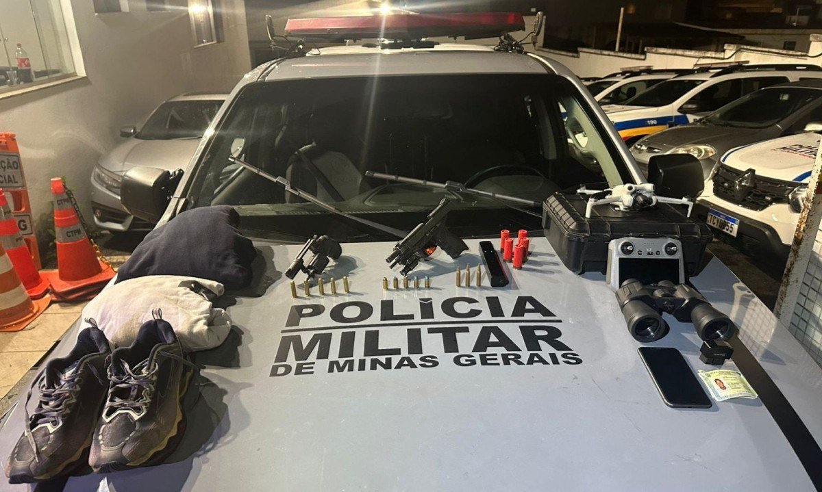 Segundo o oficial, a resposta foi imediata. "Diante disso, guarnições Rotan deslocaram até o local e conseguiram efetuar a prisão de três indivíduos além da apreensão de armas de fogo, quatro veículos clonados, munições, drone, binóculo óculo além da vestimenta utilizada na prática delitiva", informou o tenente Ottoni.
