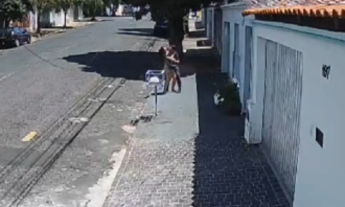 O vídeo que incriminou o homem mostra a vítima de 26 anos, que retornava da escola após deixar a filha, sendo atacada por trás pelo suspeito. Ele a segurou pelo pescoço, colocou a mão por baixo do vestido dela e fugiu após beijar seu rosto.