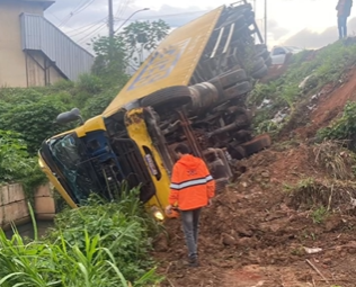 Uma carreta dos Correios perdeu o controle e caiu em uma ribanceira na manhã desta terça-feira (24/11), na BR-381, em João Monlevade (MG), na Região Central do estado.