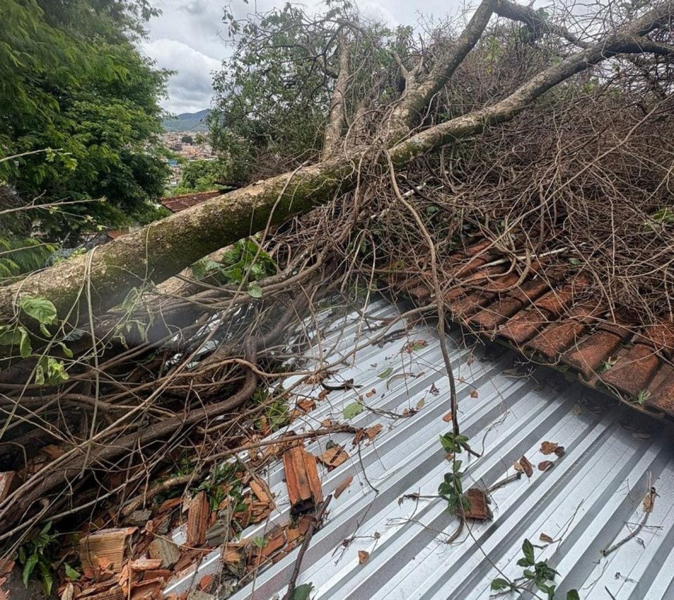 Segundo informado pela corporação, a copa da árvore cobriu mais da metade do telhado da residência. Os militares do 1º BBM passaram o dia tentando retirar os galhos e folhas, e ainda atuam no local.