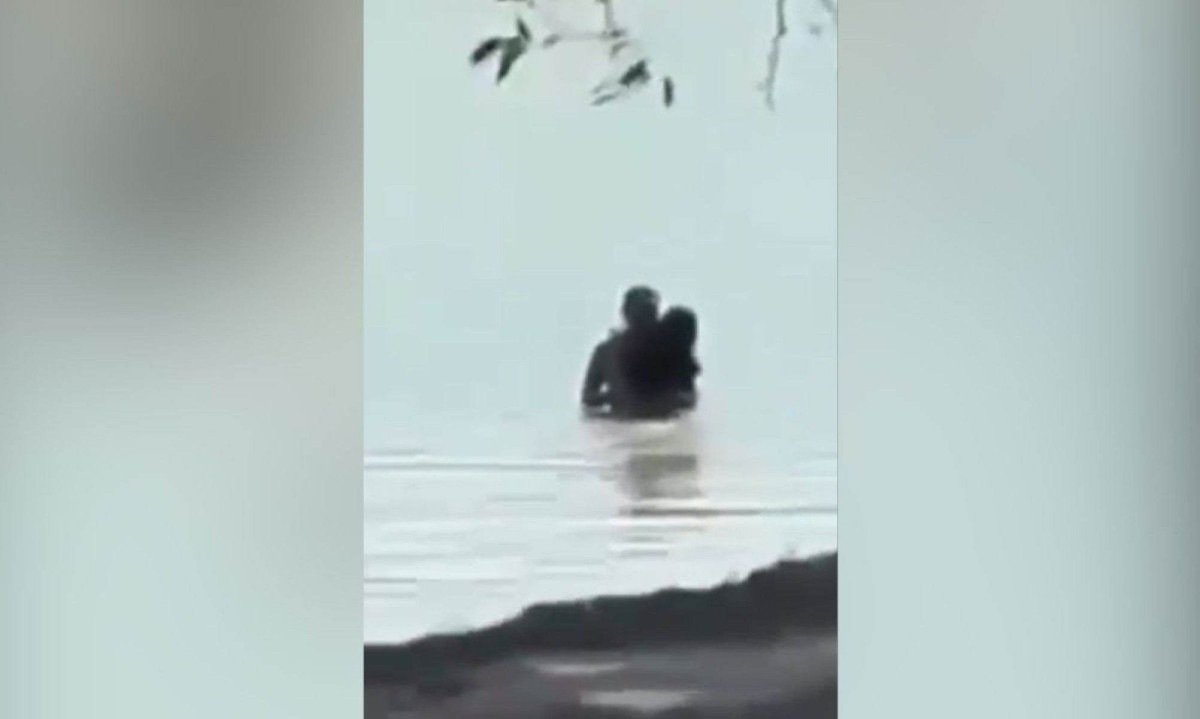 Um transeunte que passava pela Avenida Otacílio Negrão de Lima, na Região da Pampulha, em Belo Horizonte, nesta sexta-feira (2/1), flagrou uma cena inusitada: um casal se beijando enquanto tomava banho na lagoa. Além da dupla, uma terceira pessoa também se refrescava nas águas da represa.