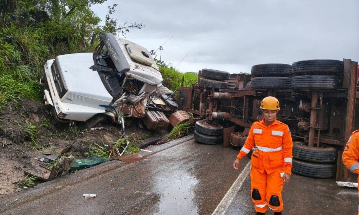 Caminhão carregado de terra tombou na BR-381 nesta terça-feira (20/01) Divulgação/CBMMG