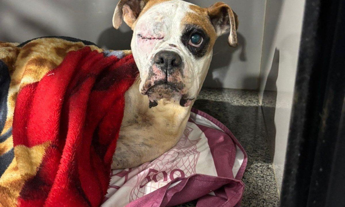 A cachorrinha, chamada Brisa, sofreu muitos ferimentos na cabeça, mas foi resgatada com vida