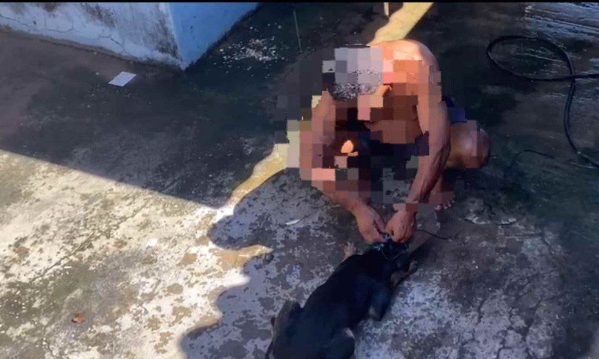 Segundo relatos e vídeos registrados por testemunhas, o animal era submetido a afogamentos em um recipiente com água e golpeado pelo suspeito.