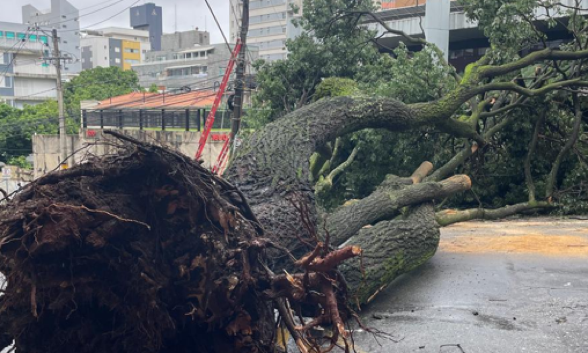 Árvore de grande porte cai e interdita rua no Centro-Sul de BH
