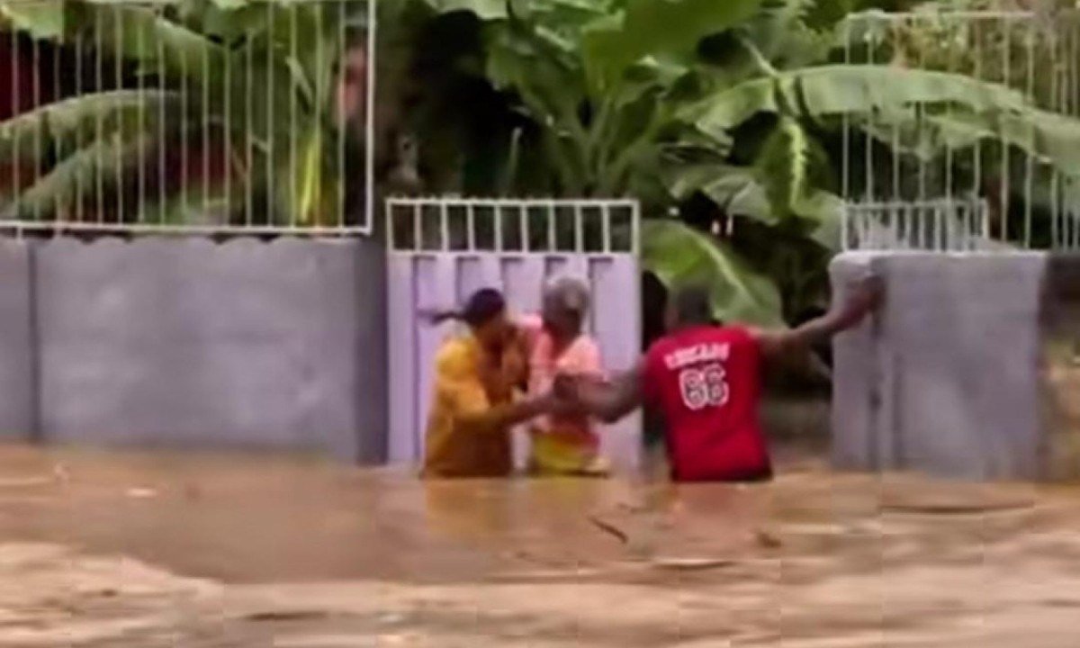 Imagens que circulam nas redes sociais mostram a idosa sendo ajudada por dois homens a sair da casa tomada pela água. De acordo com a Prefeitura de Jaboticatubas, ela foi levada para a casa de familiares e passa bem.