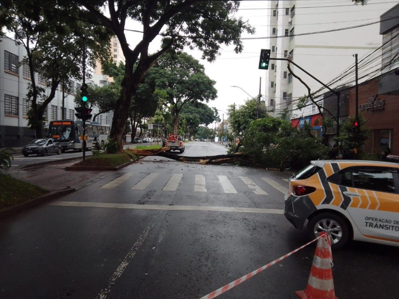 A Companhia Energética de Minas Gerais (Cemig) foi acionada e está no local. “Em apoio ao Corpo de Bombeiros, vai retirar os galhos da rede, que foi atingida mas não sofreu danos”, informou em nota. Segundo a Cemig, não será necessário desligar o fornecimento de energia para nenhum cliente.