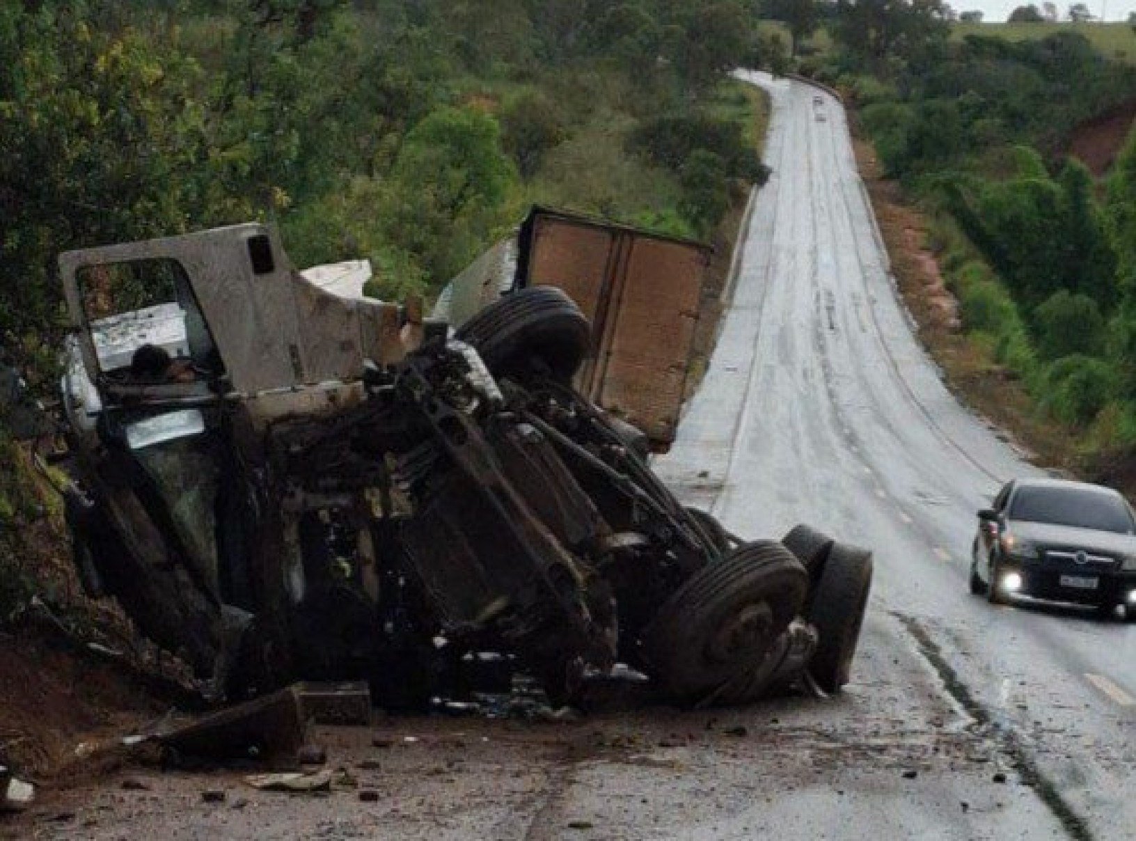 De acordo com o Corpo de Bombeiros Militar de Minas Gerais (CBMMG), a carreta sofreu aquaplanagem e capotou. A corporação informou que o acidente ocorreu próximo ao local conhecido como “Curva dos Moreiras”, no sentido Varjão de Minas, na Região Noroeste de Minas. O veículo deslocava de Salvador (BA) para Uberlândia, no Triângulo Mineiro.
